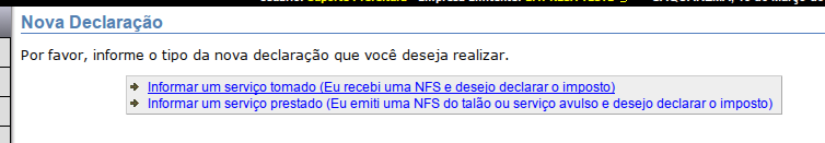2) Na tela que segue, informe o tipo de declaração que você deseja fazer. Você pode optar por declarar uma nota recebida e você é o substituto tributário, ou declarar um serviço avulso.